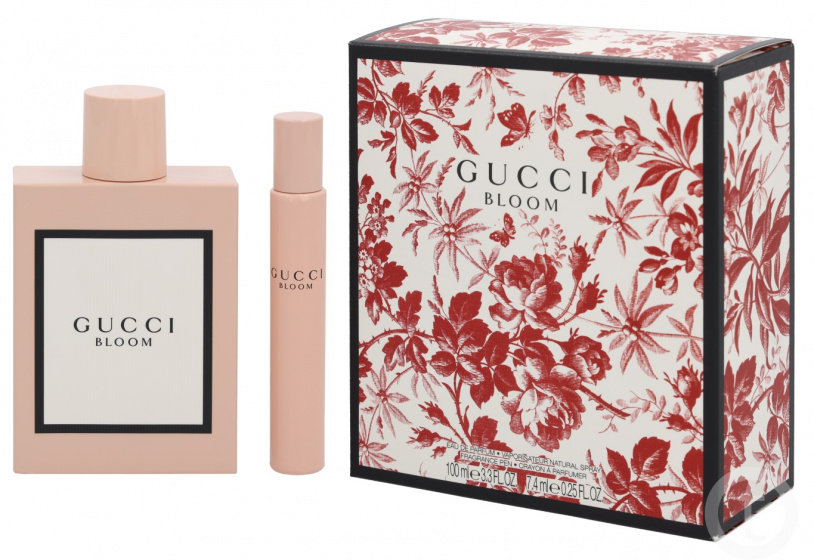 Gucci Bloom geurset Deze giftset bestaat uit een eau de parfum in twee verschillende maten: 100 ml en 7,4 ml. De kleine versie is superhandig om mee te nemen in je tas! Gucci Bloom is een geur met en mix van bloemige invloeden. De parfum heeft topnoten van sinaasappel en groene noten, hartnoten van tuberoos en jasmijn. De basisnoten bestaan onder andere uit orris wortel en vanille. Superleuk om cadeau te geven! Specificaties: Kleur: transparant Kleur fles: roze Geslacht: unisex Inhoud: 1x 100 ml, 1x 7,4 ml Navulbaar: nee Afkomstig uit: Duitsland Geurstoffen: Topnoten: sinaasappel en groene noten Hartnoten: tuberoos (Nachthyacint), Arabische Jasmijn (Sambac) en Kamperfoelie Basisnoten: orris wortel (Iris Germanica), sandelhout en vanille Inhoud: 1x Eau de parfum 100 ml 1x Eau de parfum 7,4 ml