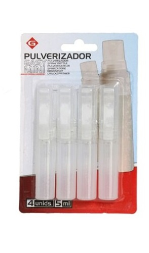Gerimport sprayflesjes Ga je binnenkort op vakantie? Voorkom zware flessen in je koffer, door deze sprayflesjes te vullen met parfum. De set bestaat uit vier sprayflesjes. Ideaal als je op vakantie gaat met het vliegtuig, maar bijvoorbeeld ook in je tas! Specificaties: Kleur: transparant Geslacht: unisex Materiaal: kunststof Afmetingen: 2 x 1,5 x 9,2 cm (B x H x L) Inhoud: 5 ml Inhoud: 4 Sprayflesjes