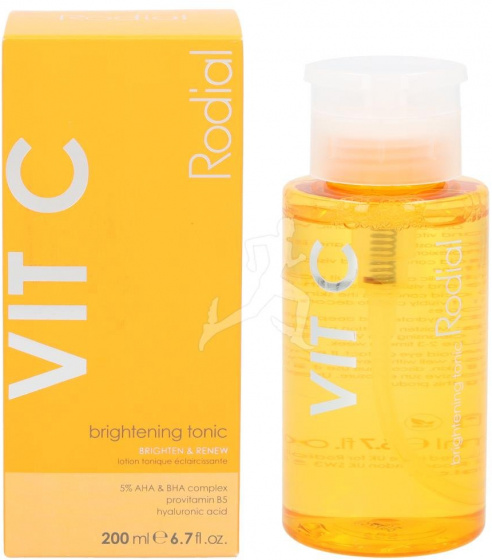 Rodial Vit C reinigingstonic Wil jij graag jouw huid op een effectieve manier reinigen en tegelijkertijd verzorgen? Met de verhelderende en luchtige reinigingstonic uit de Vit C-collectie van Rodial tover jij jouw droge of onzuivere huid binnen een handomdraai om in een zacht, glad en stralend geheel! De ingenieuze en fluweelzachte formule is aangevuld met een krachtige combinatie van voedende en reinigende ingrediënten, waaronder vitamine C, melkzuur, glycolzuur en vitamine B5: deze bestanddelen worden snel door de huid opgenomen en beginnen meteen met exfoliëren, evenals het herstellen van de vochtbalans en de teint van de huid. Deze vier belangrijke onderdelen houden zich namelijk respectievelijk bezig met het verbeteren van de uitstraling, het egaliseren van de huidskleur, exfoliatie en hydratatie. Rodial levert hiermee een hoogwaardig én betaalbaar product. Voor het beste resultaat breng je de tonic door middel van een wattenschijfje aan op de huid wanneer deze al enigszins gereinigd is. Gebruik de tonic vervolgens twee à drie keer per week. Zorg ervoor dat het product niet in de ogen komt: mocht oogcontact wel optreden, spoel ze dan grondig met lauw water. Gebruik de tonic ook niet op een geïrriteerde huid en vermijd overmatige blootstelling aan de zon zoveel mogelijk. Specificaties: Geslacht: unisex Kleur tonic: transparant Kleur fles en verpakking: oranje, lichtoranje, transparant, wit, zilver Materiaal verpakking: kunststof, karton Inhoud: 200 ml Geschikt voor huidtype: alle huidtypes (maar in het bijzonder voor de droge, vochtarme, onzuivere en vermoeide huid) Exfoliërend: ja Alcoholvrij: nee Olievrij: nee Parfumvrij: nee Hypo-allergeen: niet bekend Glutenvrij: niet bekend Hormoonverstorende stoffen: nee Veganistisch: ja Dierproefvrij: ja Biologisch: nee Verzorgend: ja Hydraterend: ja Verstevigend: ja Verzachtend: ja Voedend: ja Met salicylzuur: ja Met hyaluronzuur: ja Vervaardigd in: Verenigd Koninkrijk Gewicht: circa 250 gram Ingrediënten: Water, butyleenglycol, glycerine, polysorbaat 20, propyleenglycol, glycolzuur, natriumhydroxide, melkzuur, salicylzuur, natriumascorbylfosfaat, Citrus Sinensis-fruitwater (sinaasappel), natriumbenzoaat, Vaccinium Myrtillus-fruitextract (bosbes), kaliumsorbaat, Saccharum Officinarum-extract (suikerriet), 1-methylhydantoïne-2-imide, dinatrium EDTA, panthenol, natriumsulfiet, parfum (geur), limoneen, Citrus Aurantium Dulcis-fruitextract (sinaasappel), citrus limoen-fruitextract (citroen), natriumlactaat, Acer Saccharum-extract (suikerahorn), natriumhyaluronaat, linalool, geraniol, citral