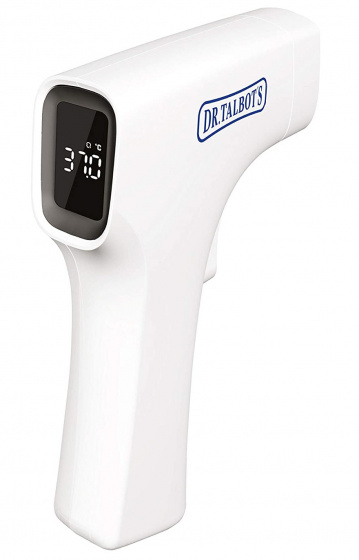 Dr. Talbot’s infrarood thermometer De Dr. Talbot’s infrarood thermometer is een handig hulpmiddel om de temperatuur van je kind of een volwassene eenvoudig en veilig te meten. De temperatuurmeting vereist geen huidcontact, de meting kan gedaan worden op vijf cm afstand van de persoon. Door het grote led-scherm van de thermometer is het makkelijk om de meting af te lezen. De ingebouwde koortswaarschuwing laat je meteen weten wanneer iemand koorts heeft. De digitale thermometer heeft een ingebouwd geheugen en schakelt automatisch uit na 60 seconden. De thermometer wordt aanbevolen voor baby’s (vanaf 3 maanden), kinderen en volwassenen. Voor de thermometer zijn 2x AAA-batterijen nodig. Specificaties: Kleur: wit Geslacht: unisex Materiaal: kunststof Voeding: 2x AAA-batterijen (niet inbegrepen) Leeftijd: vanaf 3 maanden Type scherm: led BPA-vrij: ja